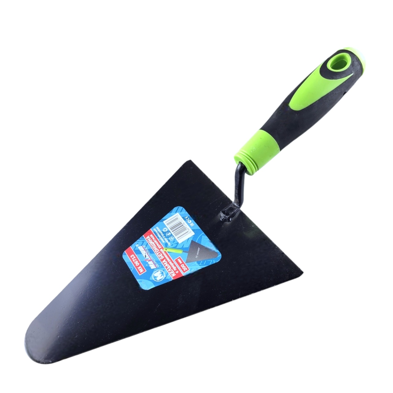 Кельма бетонщика треугольная 200 мм с двухкомпонентной рукояткой от «Maximum» - это ручной инструмент, который применяется в строительстве и ремонте для разравнивания раствора и заполнения вертикальных швов. Рабочая часть выполнена из стали с антикоррозийным покрытием.
