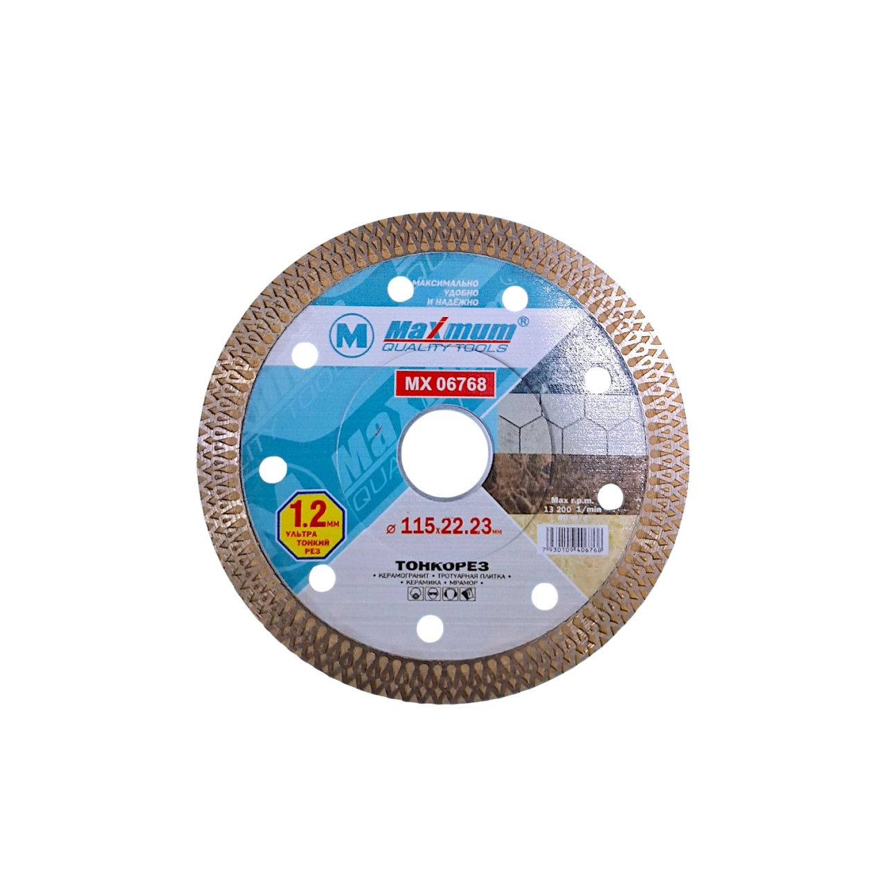 Алмазный диск MAXIMUM предназначен для сухой резки. Диск диаметром 115 мм с тонким пропилом (1,2 мм) и турбокромкой обеспечивает быстрое резание тротуарной плитки, керамогранита, мрамора и других материалов. Он рассчитан на высокоскоростную работу (до 12 500 об/мин) и обеспечивает чистый рез с минимальным количеством пыли и прилагаемых усилий.